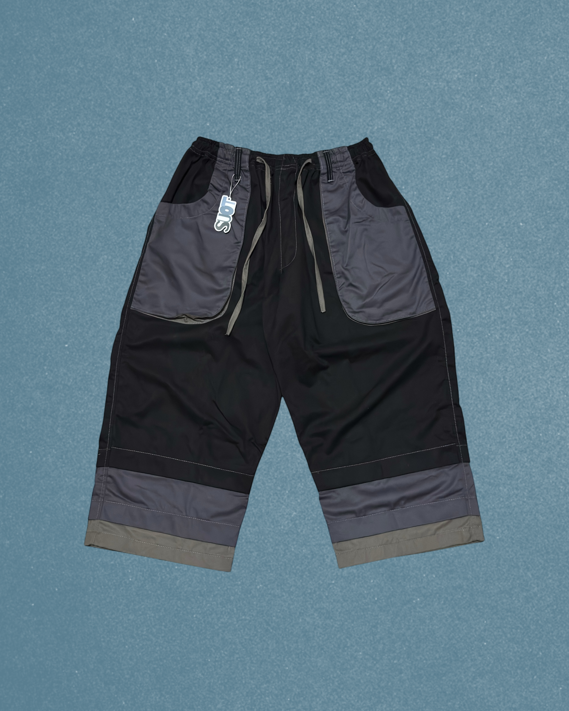 Relaxed, multi-toned pants featuring a unique three-layered hem for depth and structure. Designed with four functional pockets and a drawstring waist for adjustable comfort. The gradient color palette adds movement and dimension, making each pair a subtle statement piece that flows effortlessly with any look.